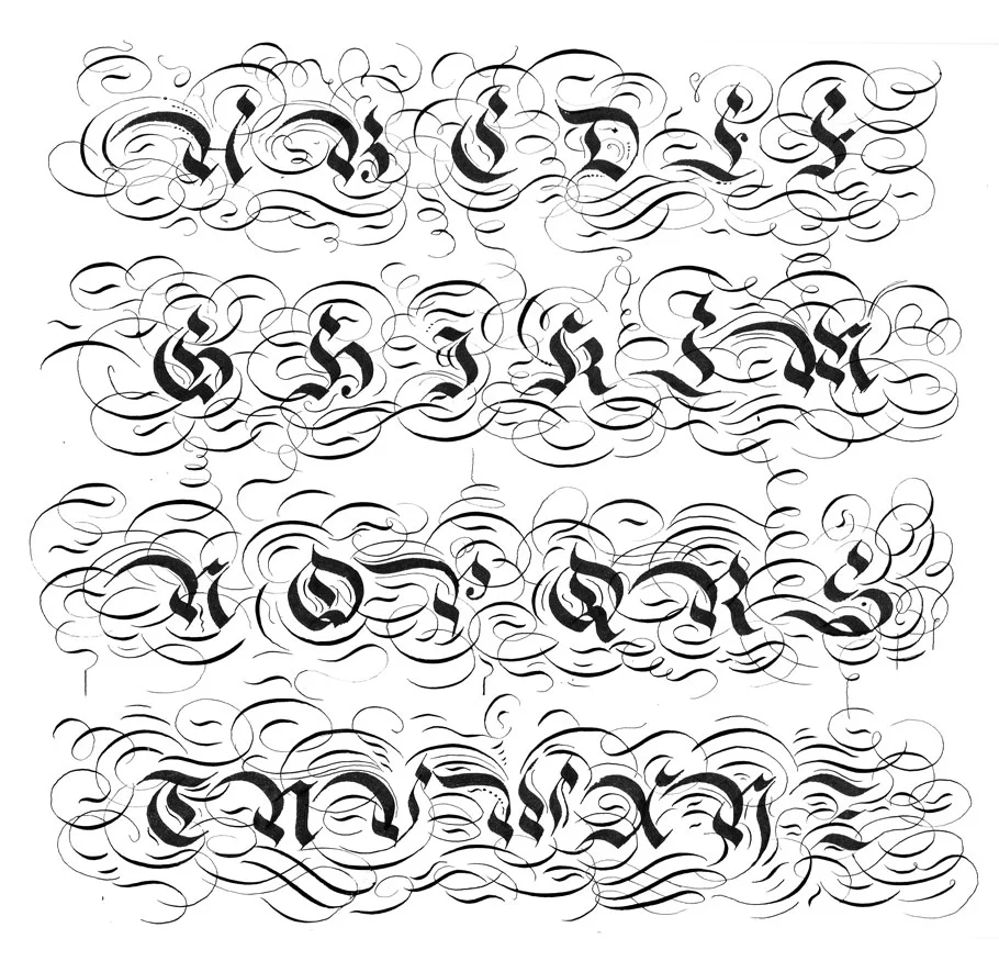 Ornamental Penmanship Engrosser's Script Off-Hand Italian ScriptWritten with a Straight Holder Ladies' Hand German Text